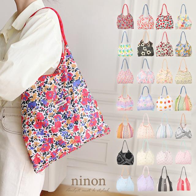 リボンフラワー総柄ショッピングバッグ/サブバッグ/トートバッグ。