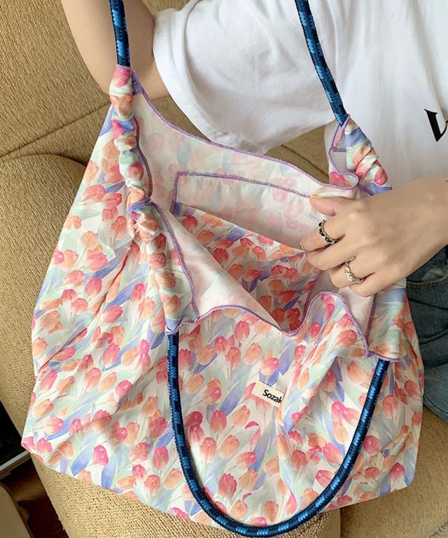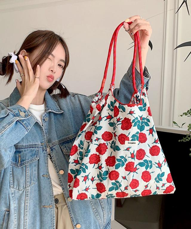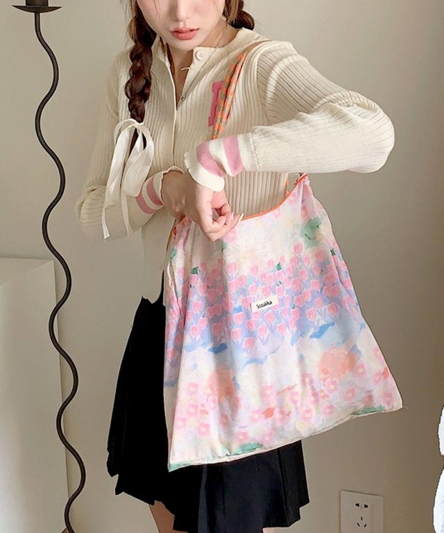 韓国ファッション、バレエコアスタイル、スクール風コーデ、スポーツMIXなどのトレンドスタイルにも取り入れたいエコバッグです。