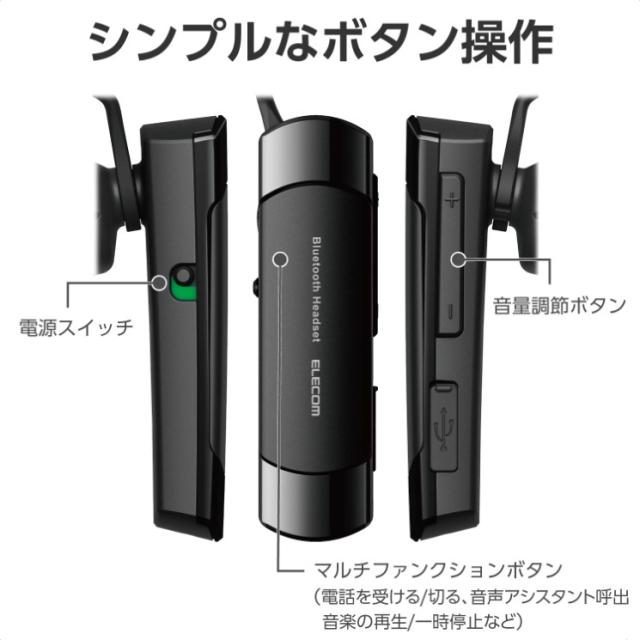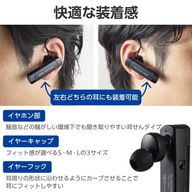 ヘッドセット Bluetooth 5.2 片耳 ワイヤレス 最大8時間連続通話 ハンズフリー Qualcomm CVC 高音質通話 左右両対応 耳掛けフック付き マイク内蔵 ブラック