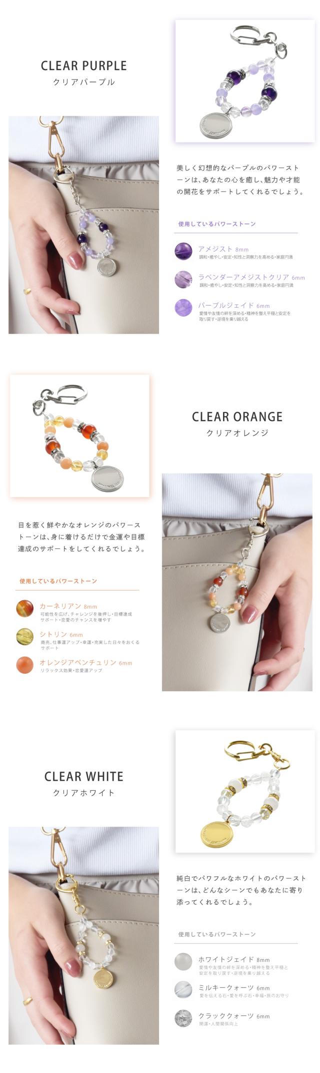 | クリアオレンジ | ・ カーネリアン 8mm 可能性を広げ、チャレンジを後押し 目標達成 をサポート 恋愛 のチャンスを増やす ・ シトリン 6mm 商売繁盛 仕事運アップ 幸運 充実した日々を送るサポート ・ オレンジアベンチュリン 6mm リラックス効果 恋愛運アップ |