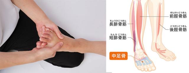 足裏の「中足骨」という骨はアーチを支える筋肉やふくらはぎなど、様々な脚の筋肉とつながっています。中足骨をマッサージすることで、中足骨につながるインナーマッスルに働きかけ、足に蓄積した筋肉の疲れを解きほぐします。