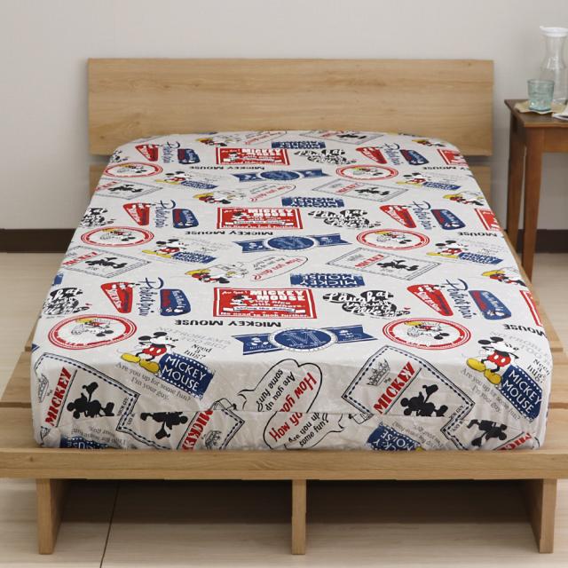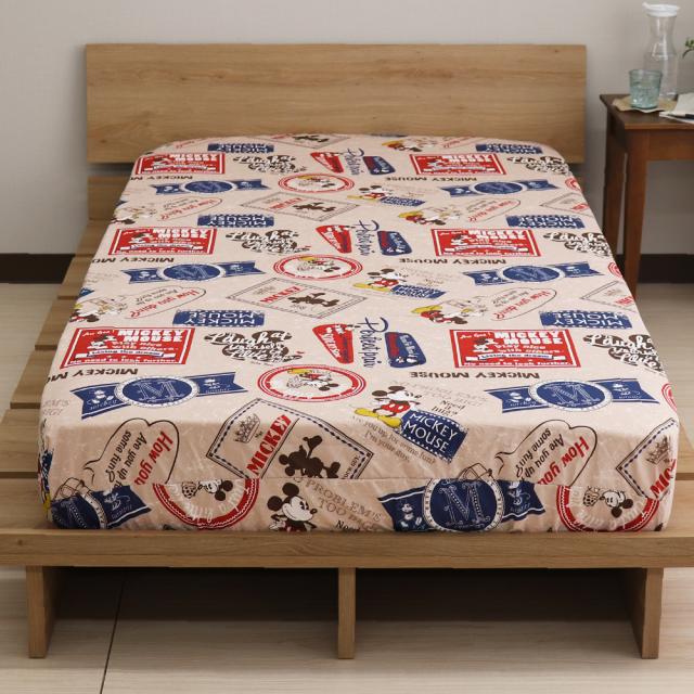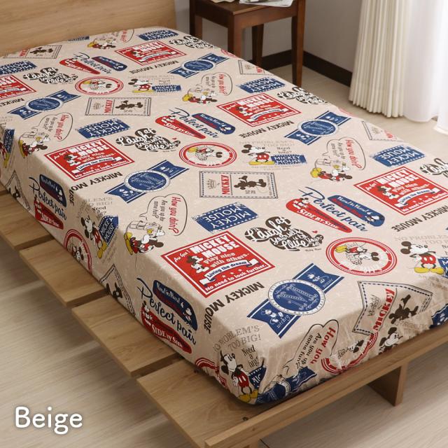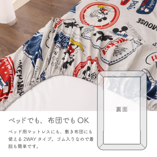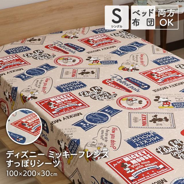 ディズニー ミッキーマウス すっぽりシーツ シングルサイズ 100×200×30cm ボックスシーツ 敷布団カバー 兼用シーツ ミッキー&フレンズ バッジ柄