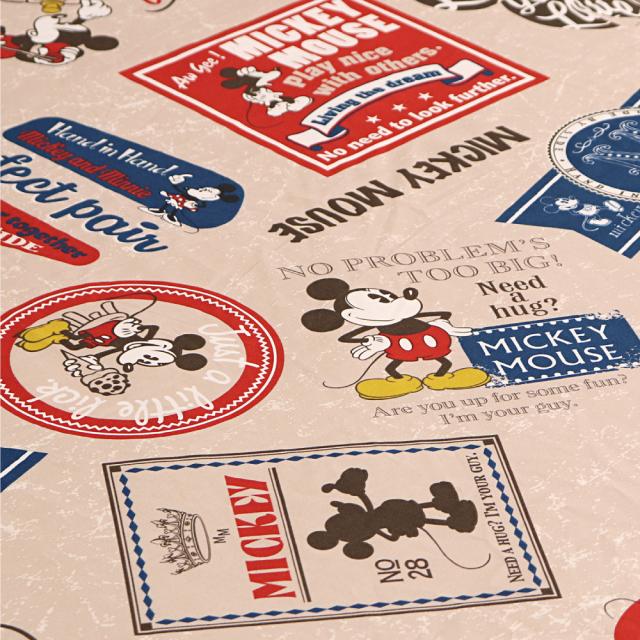 ディズニーキャラクターのシンボルキャラクターであるミッキーマウスのすっぽりシーツです。バッジ風あるいはスタンプ風にアレンジしたデザインを集めたオシャレな柄で、お部屋を素敵に演出してくれます。