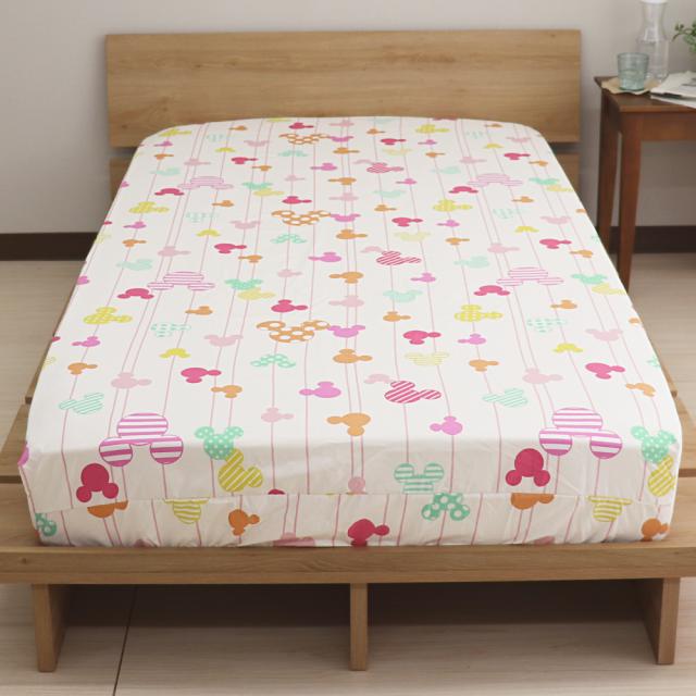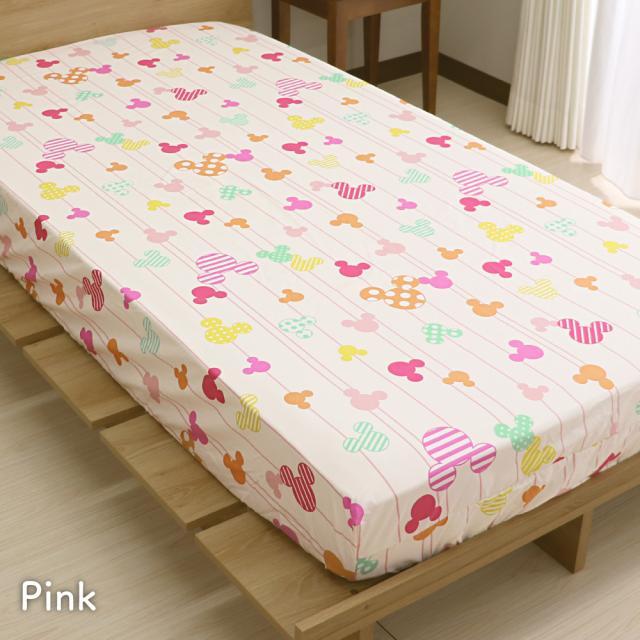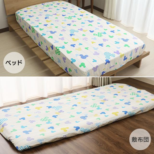 ディズニー ミッキーマウス すっぽりシーツ シングルサイズ 100×200×30cm ボックスシーツ 敷布団カバー 兼用シーツ ミツマルミッキー ストライプ柄
