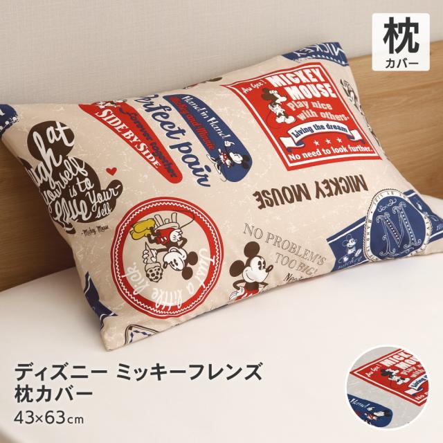 ディズニー ミッキーマウス 枕カバー 43×63cm Disney まくらカバー ミッキー&フレンズ バッジ柄