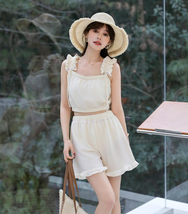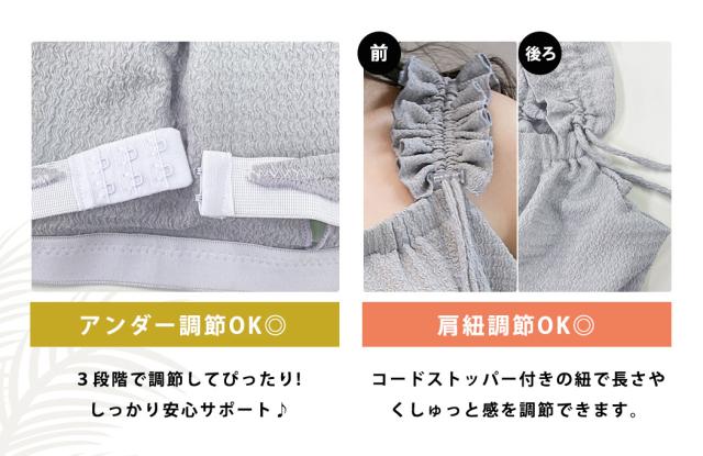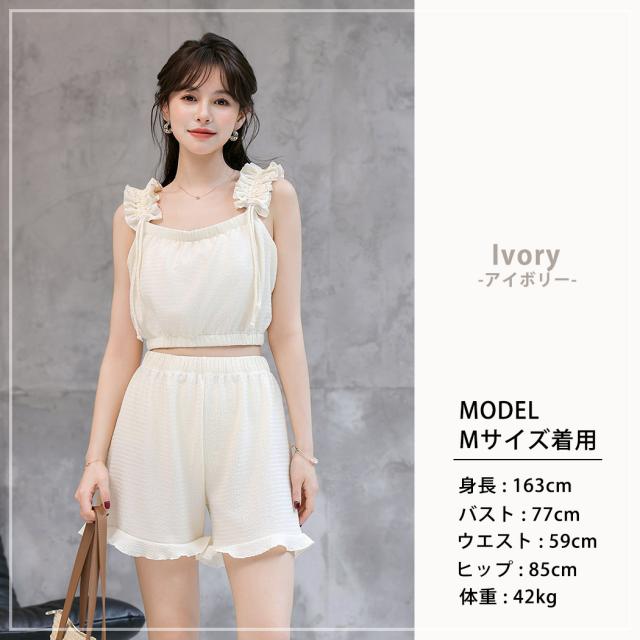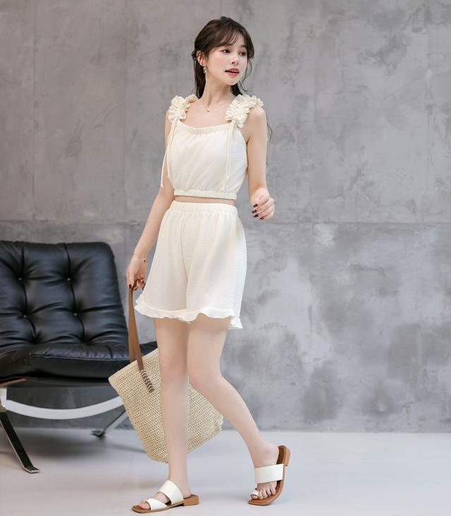 フリル肩紐が目を引く大人ガーリーなデザイン