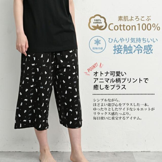 オトナ可愛いアニマル柄プリントの リラックスパンツ。 ひんやり感が気持ちいい接触冷感素材。 ゆったりとしたワイドなシルエットが リラックス感たっぷりな癒しアイテムです。 |