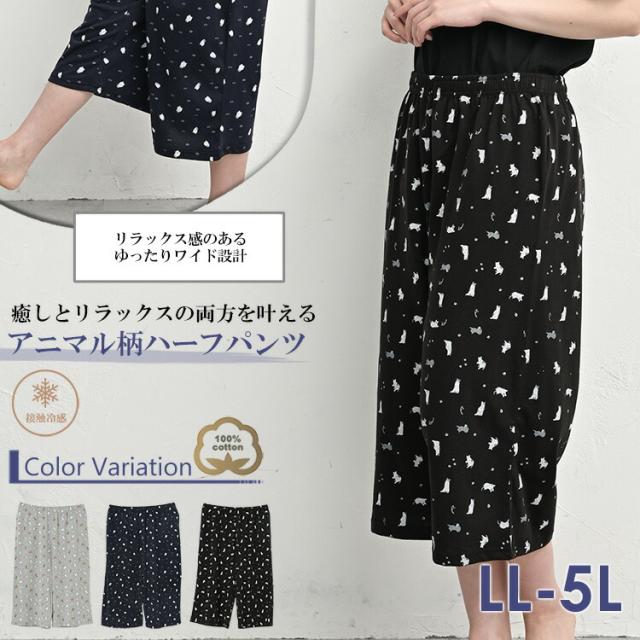 【メール便対応】オトナ可愛いアニマル柄プリントのリラックスパンツ。 XXXXL 2XL 3XL 4XL 7分丈パンツ ゆったりサイズ ぽっちゃり女子 プラスサイズ 大きいサイズ レディース クロップド丈パンツ クロップドパンツ ハーフパンツ ゆったりパンツ リラックスパンツ いぬ柄 ねこ柄 ペンギン柄 アニマル柄 総柄プリント ウエストゴム 7分丈 6分丈 ポケット 股上深め 股下39cm 春服 夏服 春物 夏物 春パンツ 夏パンツ ルームパンツ ルームウェア 部屋着 パジャマ 体型カバー 下半身カバー 接触冷感 ひんやり生地 コットンパンツ cotton100 大人 カジュアル ナチュラル おしゃれ きれいめ かわいい かっこいい 着こなし コーデ 定番 春コーデ 夏コーデ ファッション 大きめ 女性 婦人用 ミセス 30代 40代 50代 2025 夏新作 春 夏 紺 黒 灰色 LL 3L 4L 5L 13号 15号 17号 19号 cla-ss-bt0556