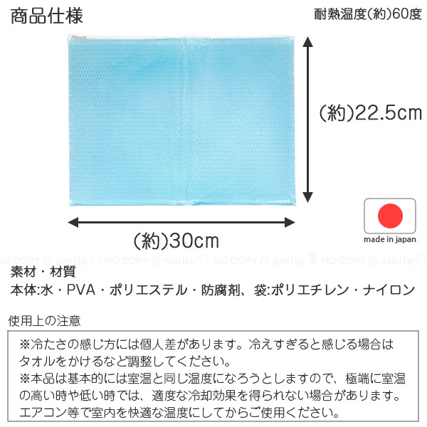 ※本品は基本的には室温と同じ温度になろうとしますので、極端に室温が高い時や低い時では、適度な冷却効果を得られない場合がございます。