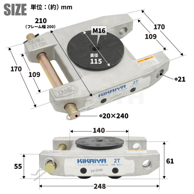 マシンローラー 軽量 アルミ 2トン 超低床 重量物移動ローラー チルローラー 設置用ローラー 重量物運搬 アルミニウム合金 台車 ターンテーブル付 KIKAIYA