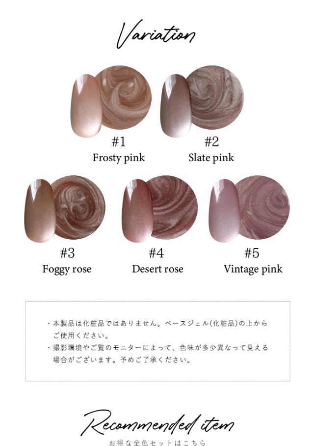 【1】フロスティピンク 【2】スレートピンク 【3】フォギーローズ 【4】デザートローズ 【5】ヴィンテージピンク 4ml |