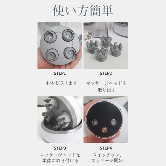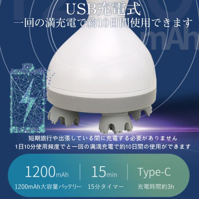 ヘッドマッサージ器 ヘッドスパ 108突起 3種類動作モード コードレス 10分タイマー 回転方向 スピード調整可 軽量 全身使用可 USB充電 プレゼント ギフト 台座付き 小型化 静音 誕生日 母の日 風呂上がり