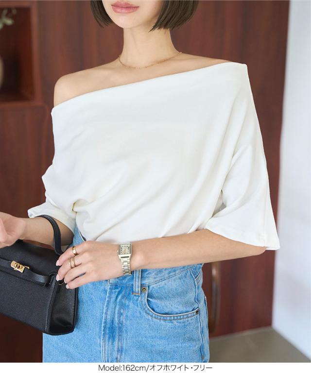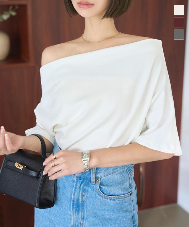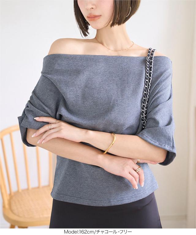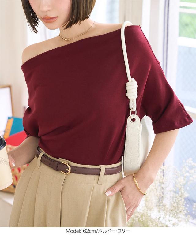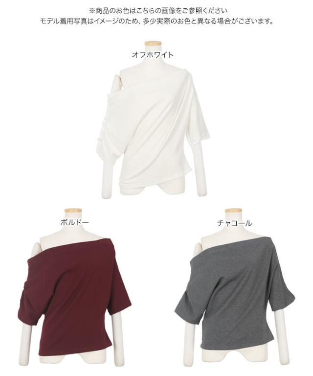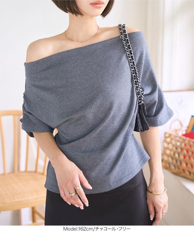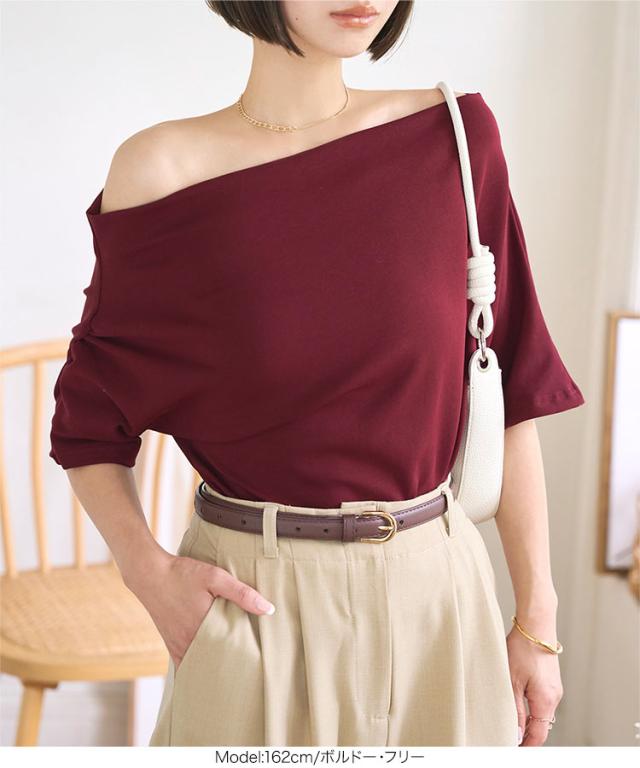 春新作 オフショルダーTシャツ C7580 入荷済 レディース 20代 30代 40代 カットソー Tシャツ 半袖 オフショルダー オフショル ワンショル ギャザー 白 赤 グレー ホワイト レッド ボルドー チャコール 無地 シンプル カジュアル 体型カバー