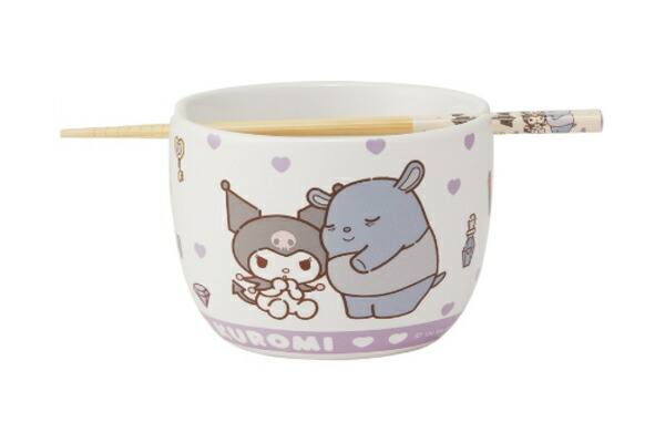 スケ697258 【サンリオキャラクターズ】陶器製ボウルと竹箸セット【クロミ】【お皿】【おはし】【食事】【食器】【キッチン】【雑貨】【グッズ】【かわいい】