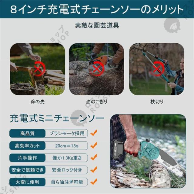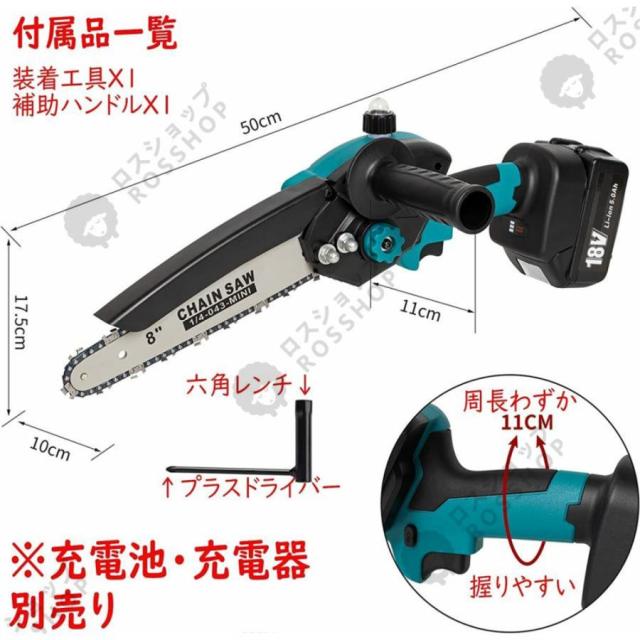 充電式チェーンソー 小型チェンソー マキタバッテリー互換 電動チェーンソー 女性 強力 片手 軽量 木工切断 枝切り 伐採 ポータブル【本体のみ】敬老の日