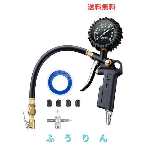 AstroAI エアゲージ タイヤゲージ エアチャックガン100PSI 689KPA 空気圧ゲージ 空気圧計 自発光機能 高精度 空気圧測定 空気入れ 空気抜