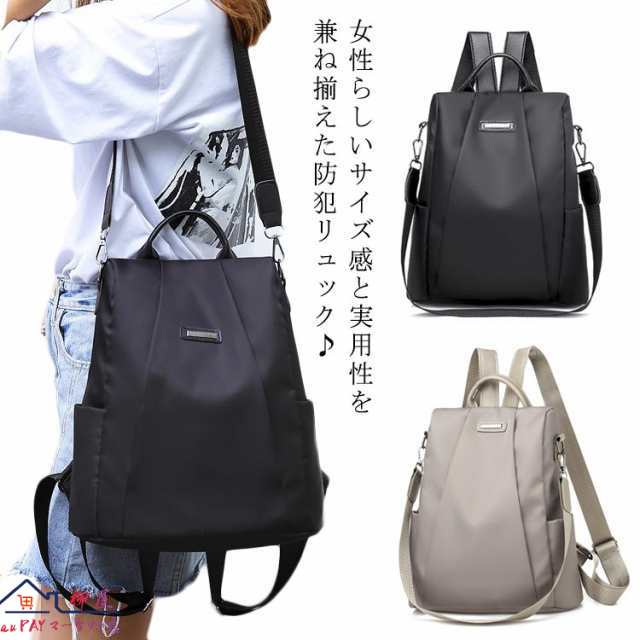 | 女性らしいサイズ感と実用性を兼ね揃えた防犯リュック? 防犯性能-リュックの背面には独立した大きなファスナーポケットが付いていますので、貴重品の収納に最適です。 3WAY仕様リュック-肩掛け、手提げ、リュックとしても使用出来る3wayのリュックサックです。 上質な高品質ナイロン素材を採用、雨の日も安心してご使用いただけます。 ポケットが多く、たっぷり収納でき、さらに軽量で機能性抜群 | |