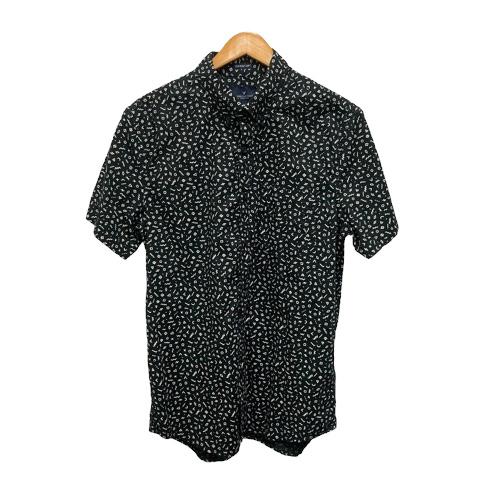 【中古】アメリカン・イーグル AMERICAN EAGLE シャツ 半袖 総柄 M 黒 ブラック 白 ホワイト メンズ