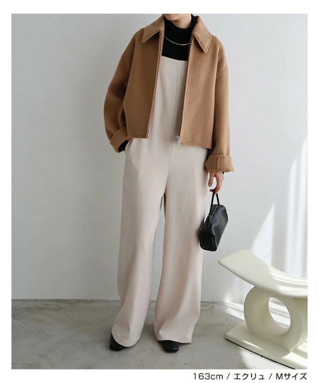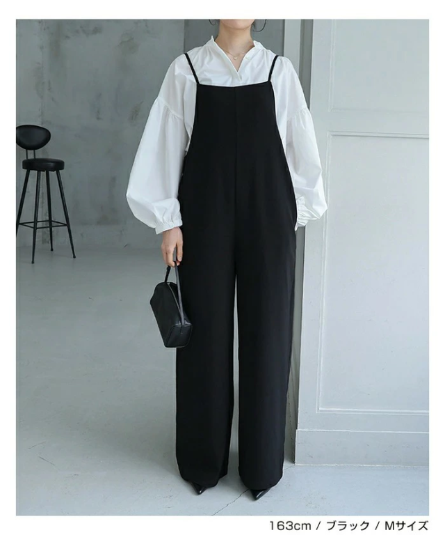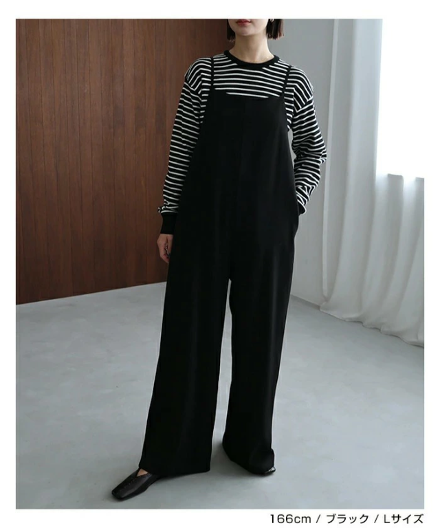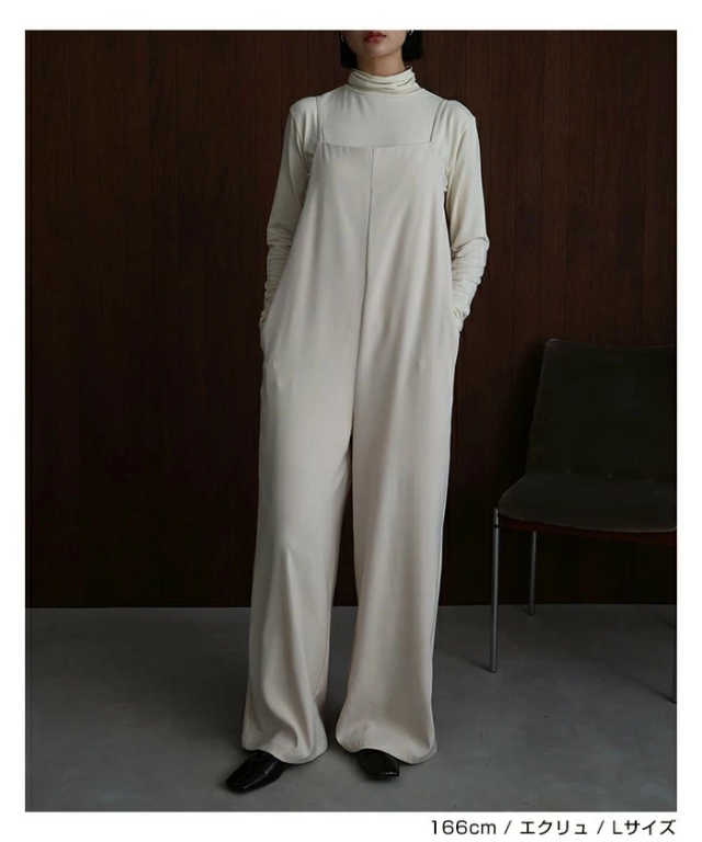 トレンド感のあるスクエアネックが印象的な大人のためのワイドサロペットが登場しました。