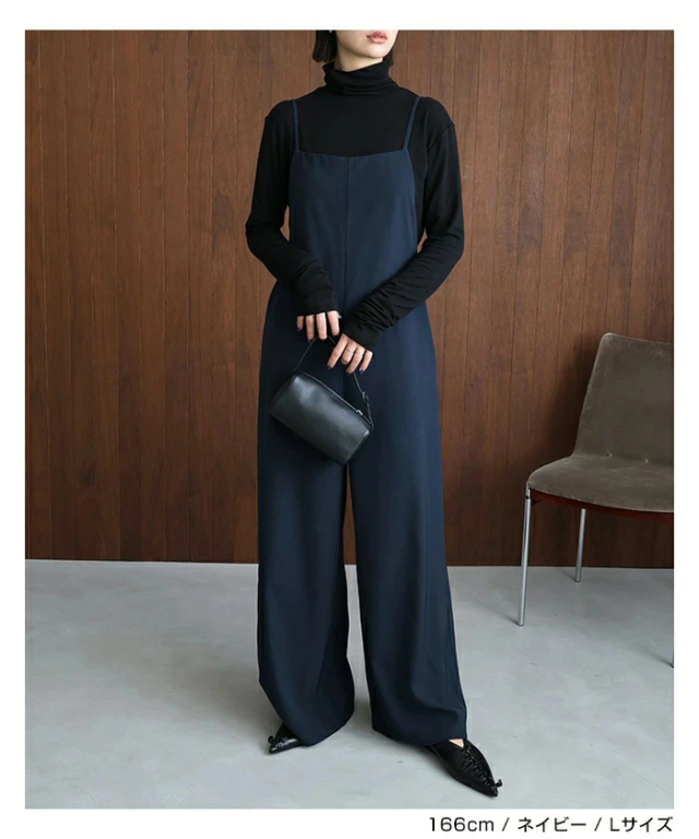 t04 とろみ素材 スクエアネック サロペット レディース ワイド スクエアネック ストラップ 細見え きれいめ サイドポケット 楽ちん トレンド感 セレモニー 春夏 秋冬 evernavy エバーネイビー 大人 ファッション きれいめ ゆったり オフィス カジュアル ナチュラル 送料無料