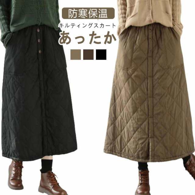 キルティングスカート あったか ルームウェア スカート 大きいサイズ 中綿スカート 無地 厚手 キルティング ロングスカート 防寒 ゆったり ポケット付き 秋冬 送料無料