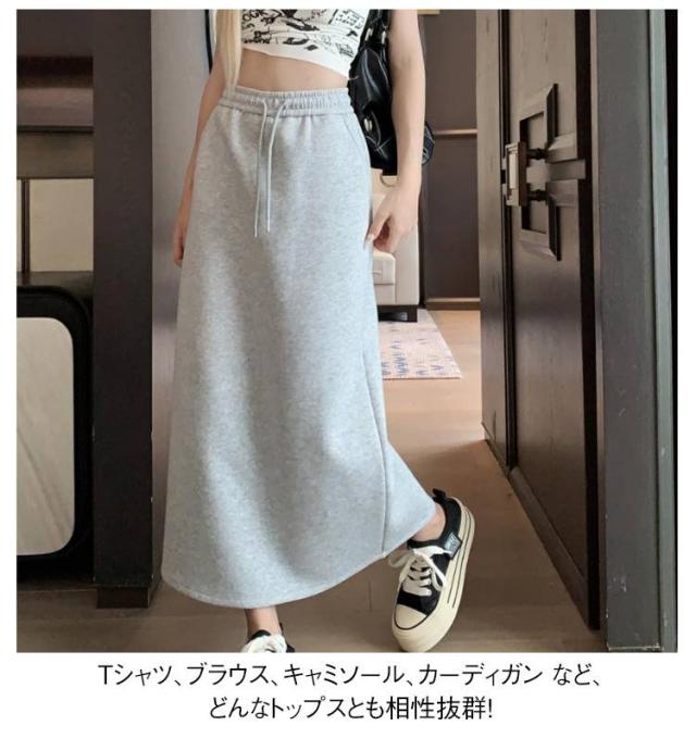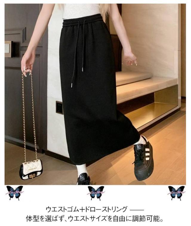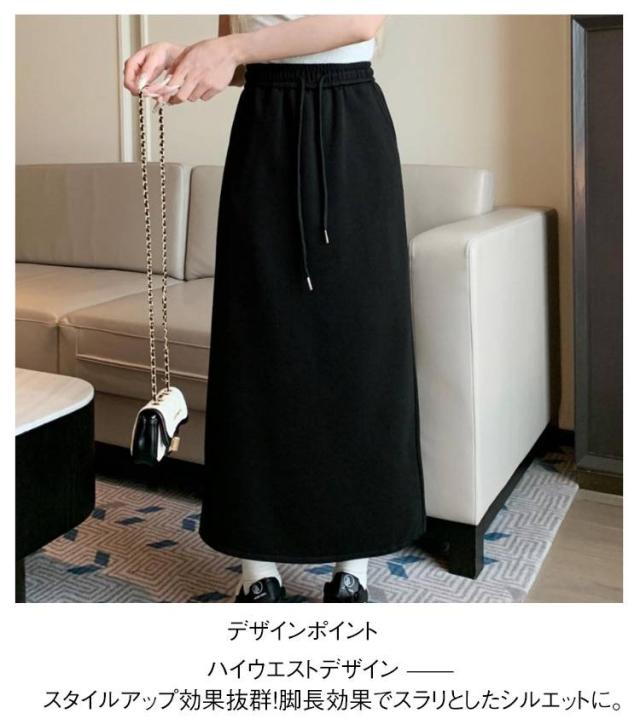 ゆったり ハイウエスト ミディスカート スリット入り ロングスカート スウェット ロングスカート スカート ウエストゴム カジュアルスカート ロング丈 シンプル おしゃれ