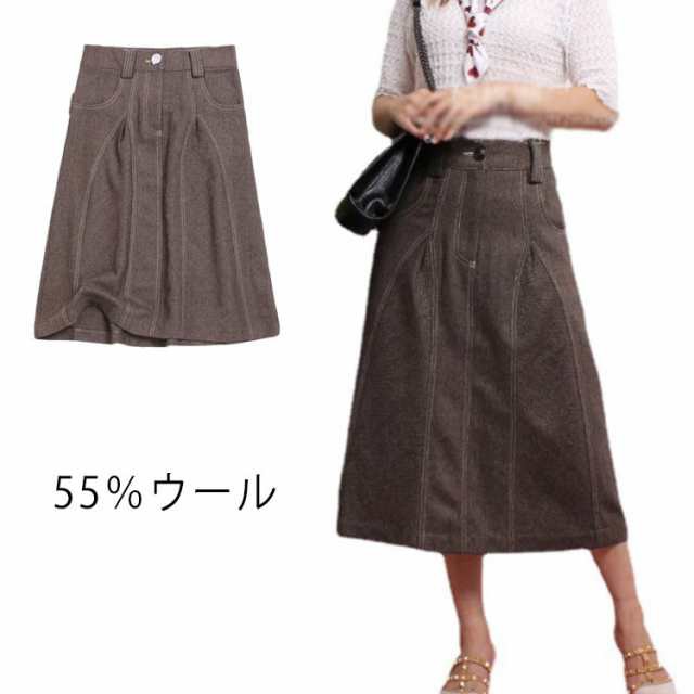 55%ウール ウールスカート マキシスカート 秋冬 秋 スカート ロングスカート タイト スカート aライン 無地 シンプル カジュアル 通勤 着回し インナー きれいめ 美脚