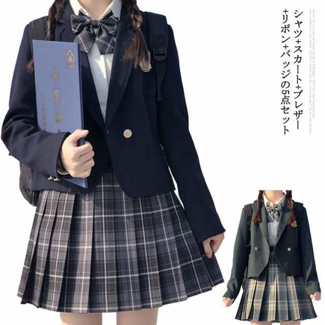 制服 jk制服 学生 スクール制服 フォーマルスーツ 5点セット シャツ スカート ジャケット リボン バッジ JK制服 セーラー服 入学式 スーツ チェックスカート スカートスーツ 発表会 卒業式 コスプレ 学院風