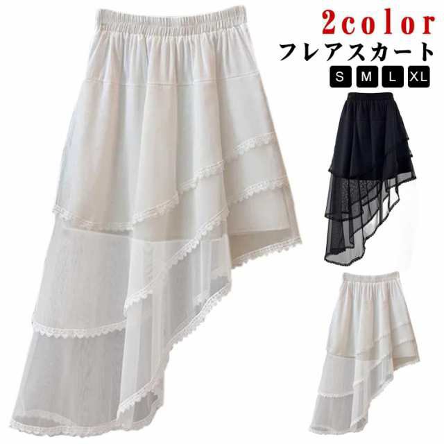 レイヤード マキシ丈 スカート チュールスカート フリル 不規則 フレアスカート Aライン 変形 アシンメトリー 個性的 病み レイヤード ドレープ ロングテール ロングスカート チュチュスカート
