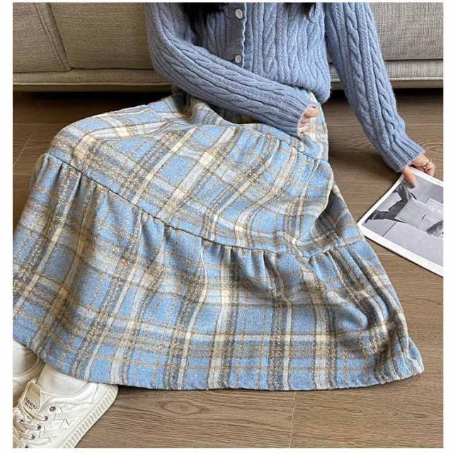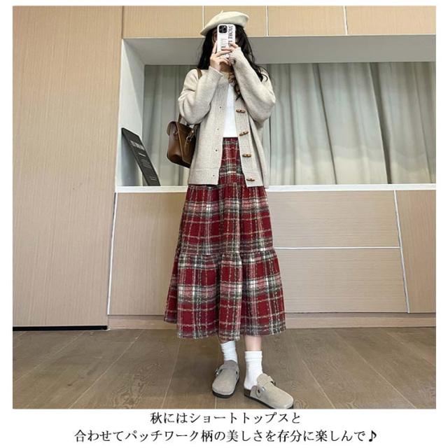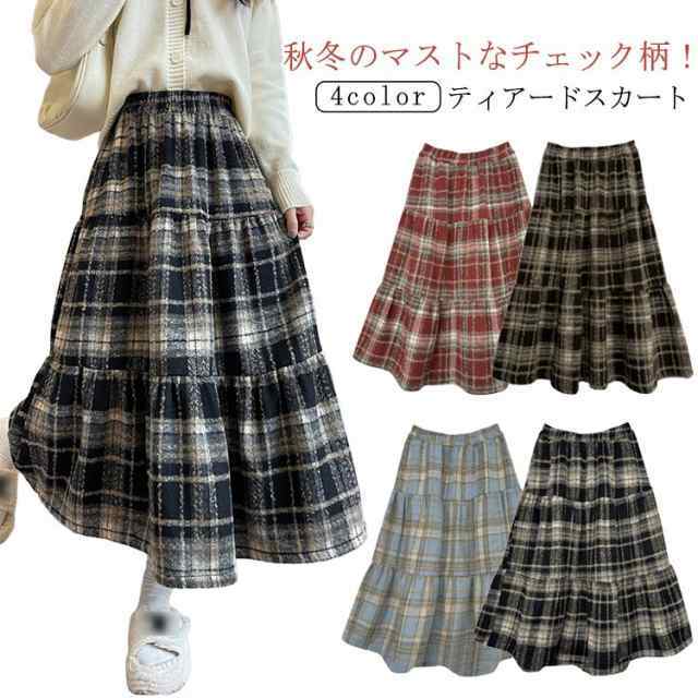 ティアード ティアード 起毛素材 Aライン チェックスカート チェック柄 ティアードカート ロングスカート チェックスカート フレア マキシスカート 長め ロンスカ スカート ウエストゴム 体型カバー きれいめ 秋 冬 レッド ブルー ネイビー