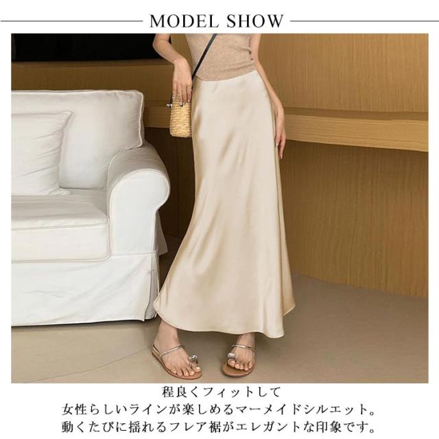 マーメイドスカート サテンスカート サテン マーメイド フレアスカート レディース ロングスカート タイトスカート ハイウエスト ロング丈 マキシ丈 光沢感 上品 トレンド 着痩せ お洒落 着心地 サテン素材 リラックス 普段着 通勤