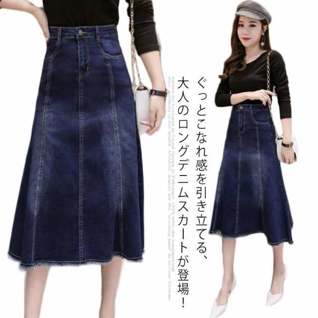 マーメイドシルエット デニムスカート ハイウエストデニムスカート デニム タイトスカート ロングスカート ロングデニムスカート デニムロングスカート aライン ロング丈 スカート 春 夏 秋 冬