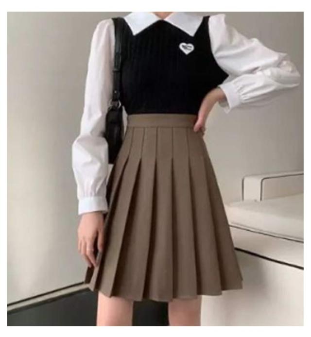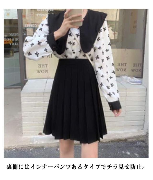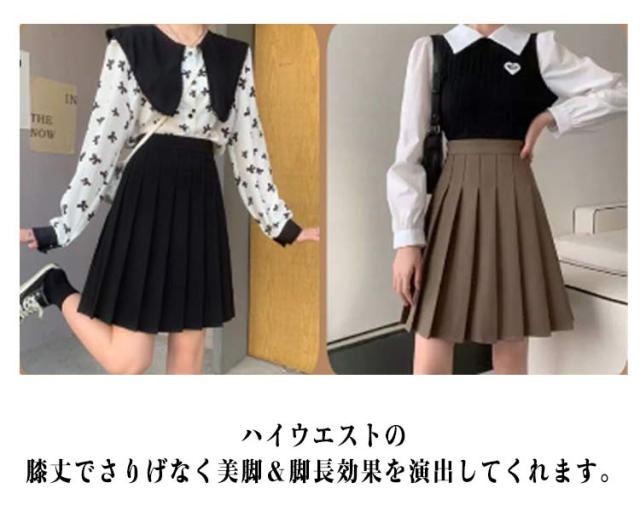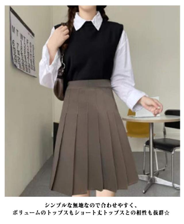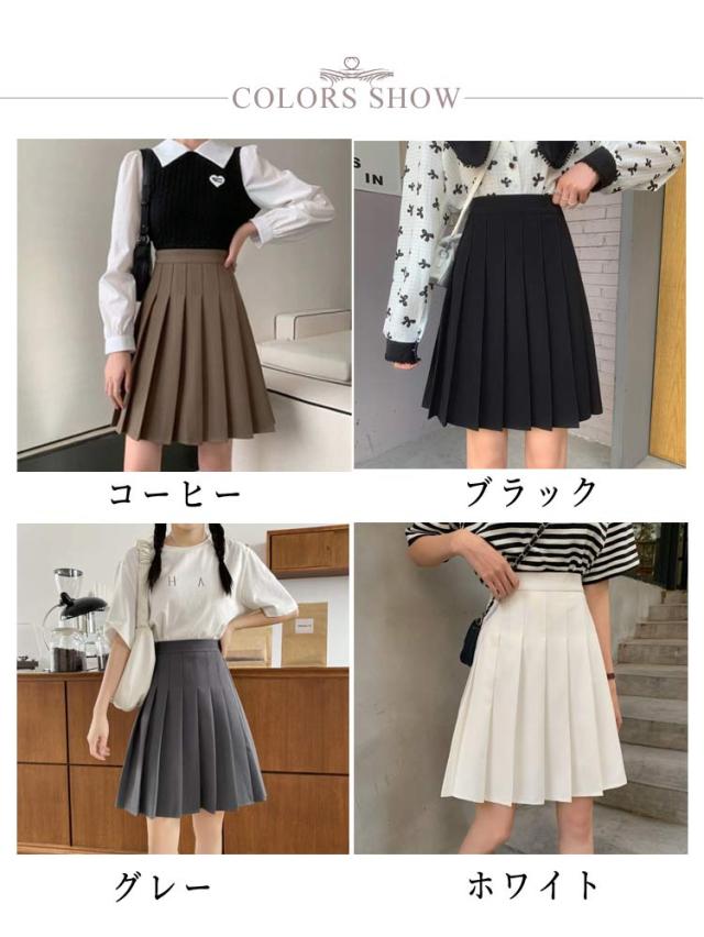 プリーツスカート レディース 制服 スカート フレアスカート 膝上丈 スクールスカート 学生服 Aライン ハイウエスト スカート カジュアル シンプル 無地 パンツ付きスカート 裏地付き チラ見せ防止 大きいサイズ コーヒー ブラック グレー ホワイト