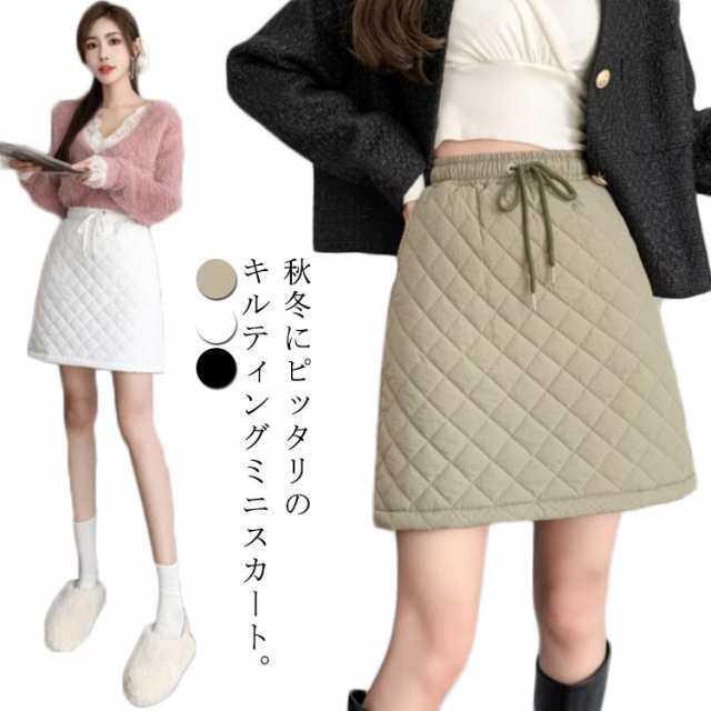 ミニスカート 可愛い 秋服 キルティン 中綿スカート レディース 秋冬 Aライン スカート 膝上 暖かい きれいめ 防寒 大きいサイズ 韓国ファッション 冬服 キルティン M L XL 2XL 3XL