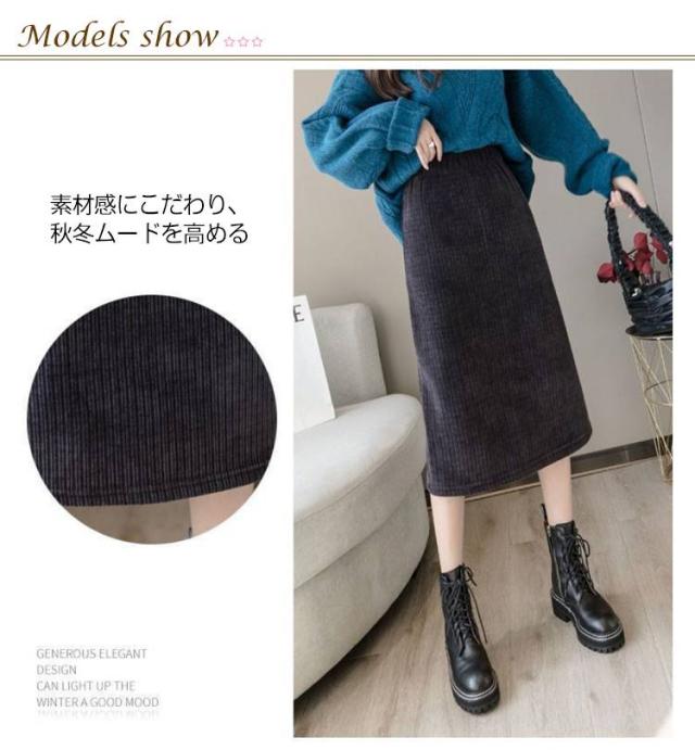 | レディースタイトスカート 素材感にこだわり、秋冬ムードを高める 秋冬のあたたかい印象を与えるコーデュロイ素材タイプは、 保温性が高く、カジュアルから少しフォーマルなスタイルまで幅広く対応できます。 | |