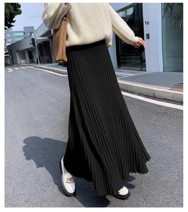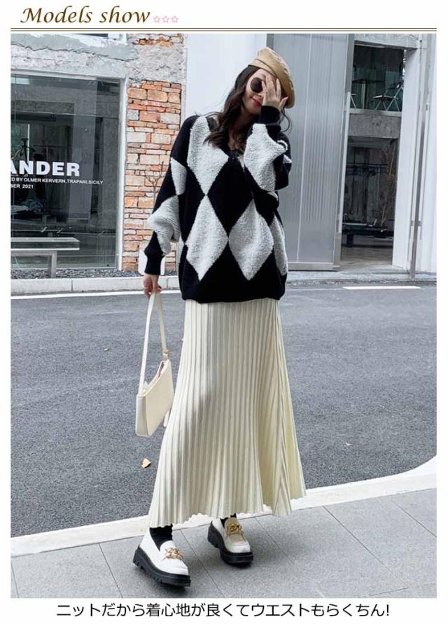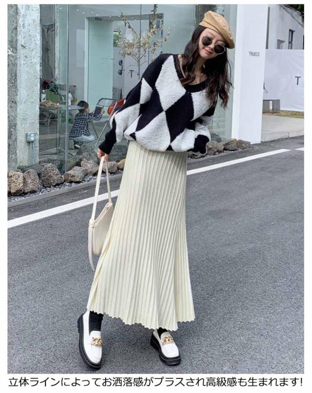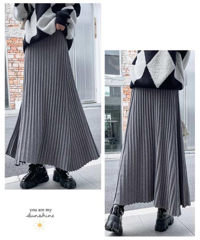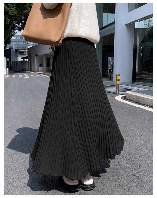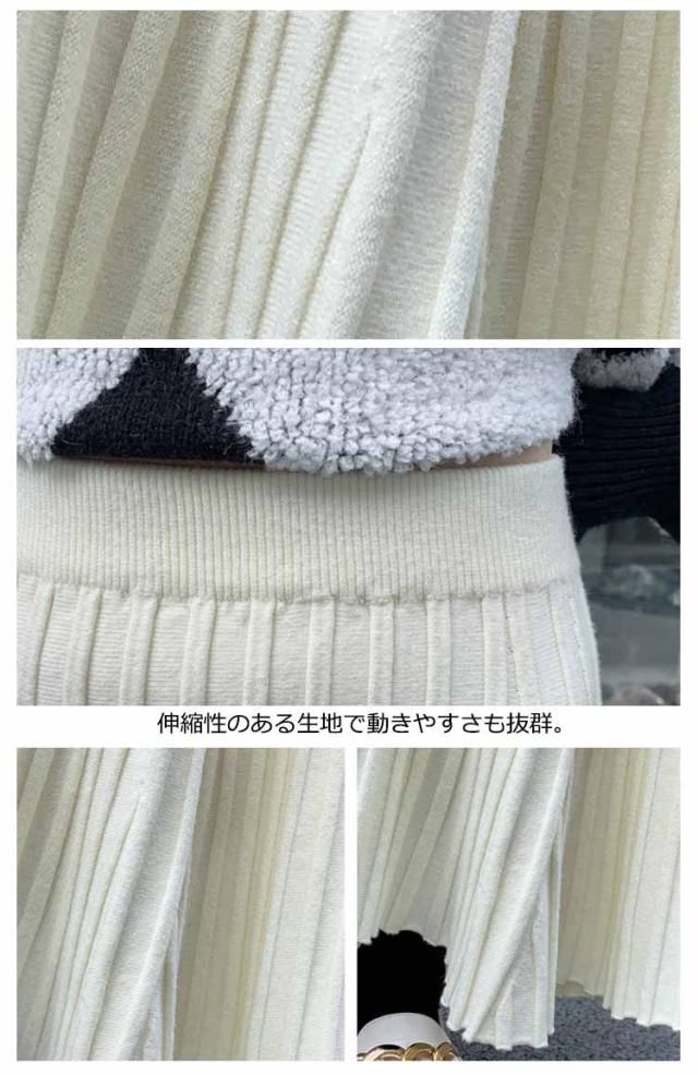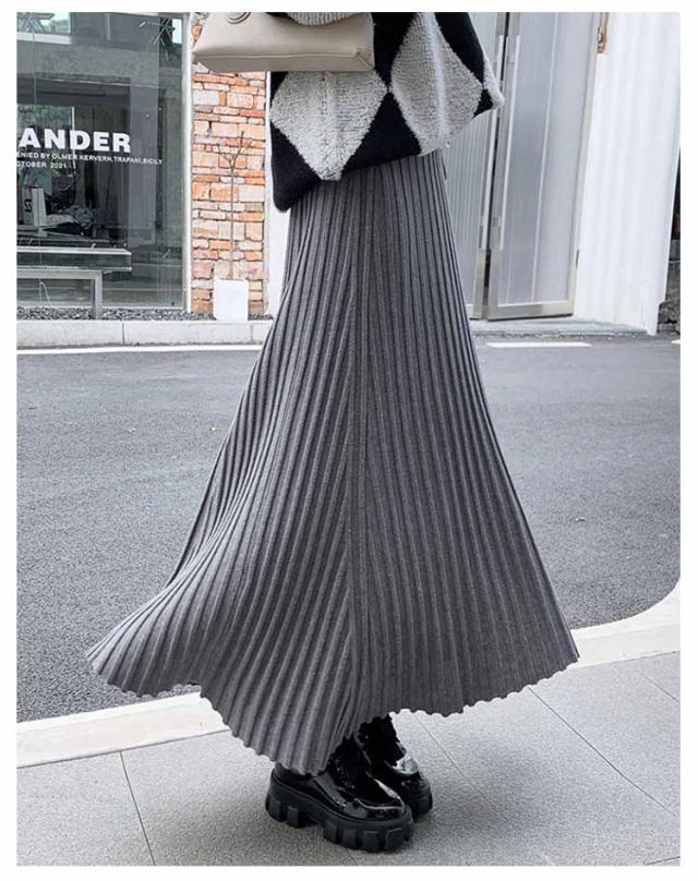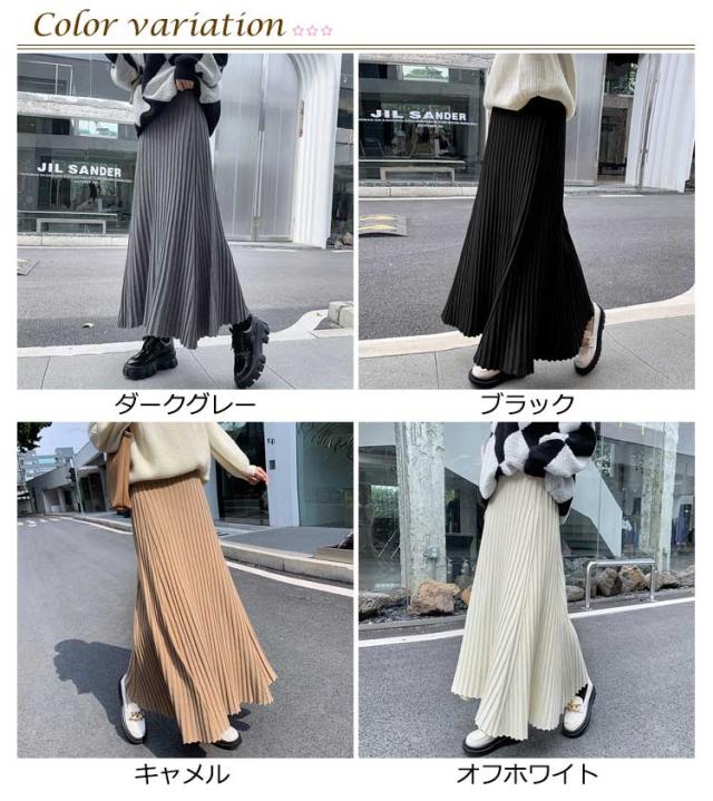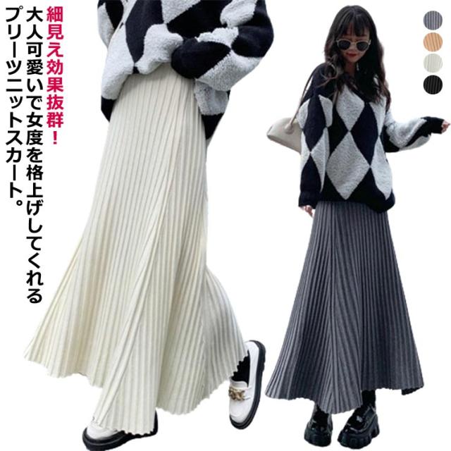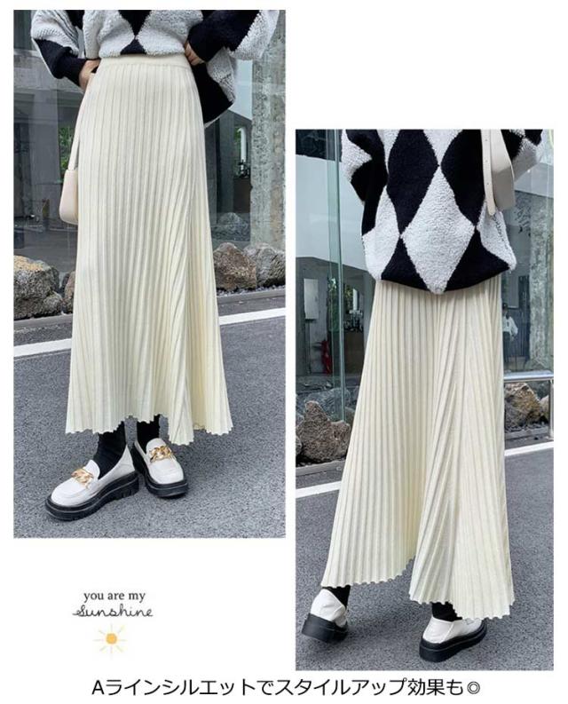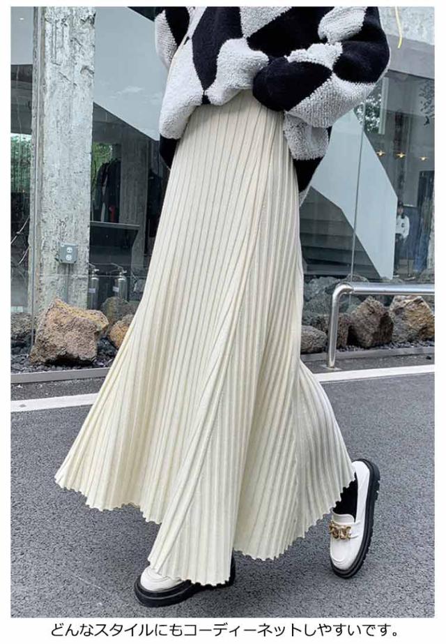ニットスカート プリーツ 細見え ロング スカート リブ ロング丈 Aライン フレアスカート スカート ボリューム レディース ボトムス ハイウエスト 春 秋 冬 厚手 暖かい 防寒 伸縮性 ストレッチ 動きやすい オフィスカジュアル