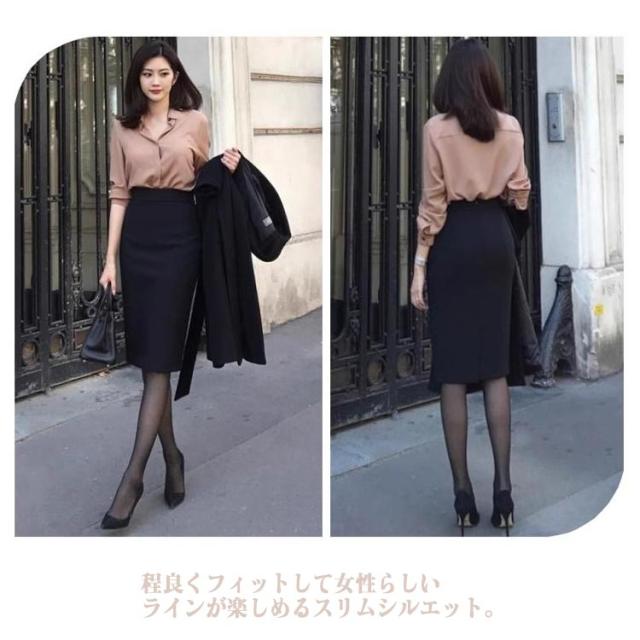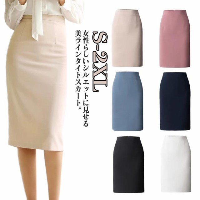 スカート レディース タイトスカート 膝丈スカート ペンシルスカート ミディ丈 ハイウエスト Hライン バックスリット フォーマル 制服 事務服 仕事 ビジネス フォーマル リクルート 就活 通勤スカート 入学式 着痩せ ブラック ネイビー ベージュ ピンク ブルー ホワイト