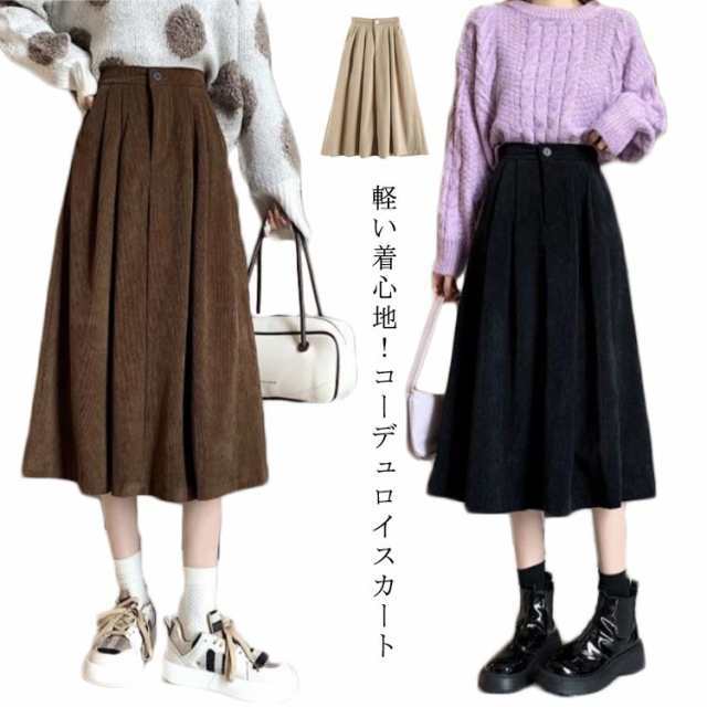 コーデュロイフレアスカート ロング丈 マキシ丈 膝下 ひざ下 フレアスカート ロングスカート 大きいサイズ 秋冬 コーデュロイ タックスカート ロンスカ ウエストゴム コーデュロイスカート カジュアル ナチュラル おしゃれ オシャレ 可愛い
