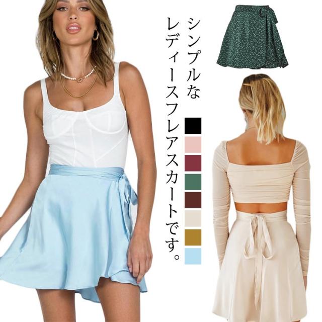 フレアスカート ミニスカート フレアミニスカート ショートスカート スカート ミニスカ ハイウエスト ウエストリボン 膝上丈 リゾート 旅行 フォーマル ビジネス 美脚 無地 20代 30代 40代 50代