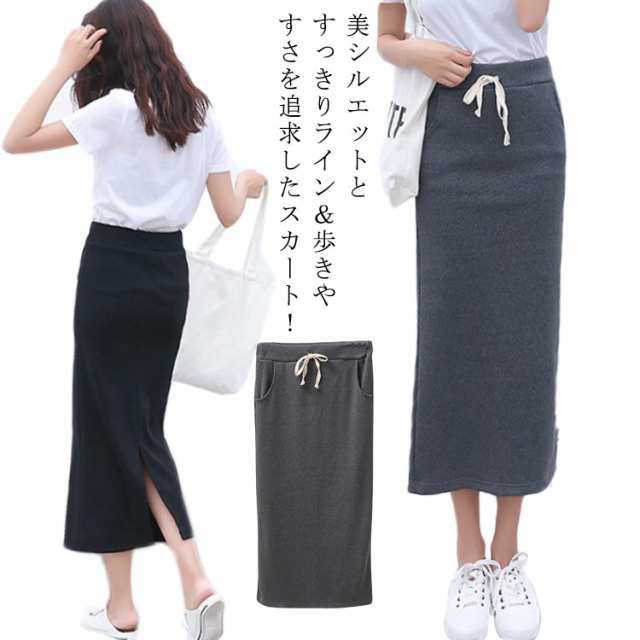スウェット タイトスカート スエット レディース ロングスカート ミモレ丈 ロング丈 スリット入り 無地 カジュアル ルームウェア ボーダースカート リラックス シンプル
