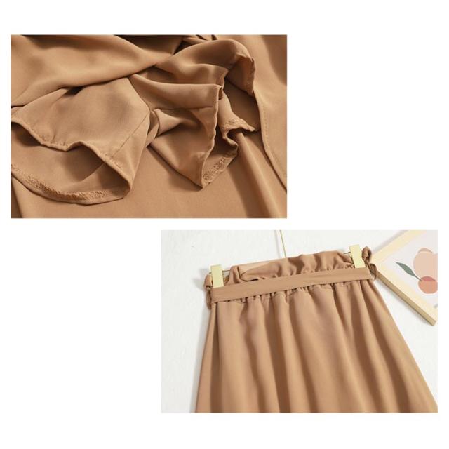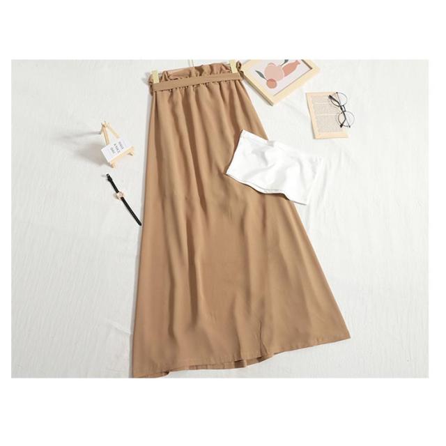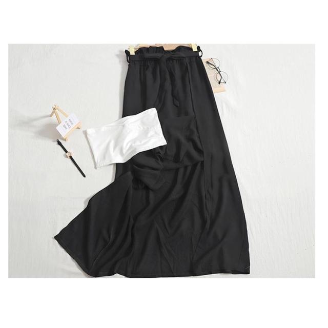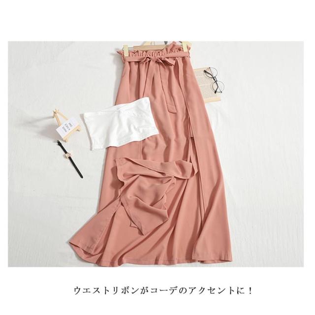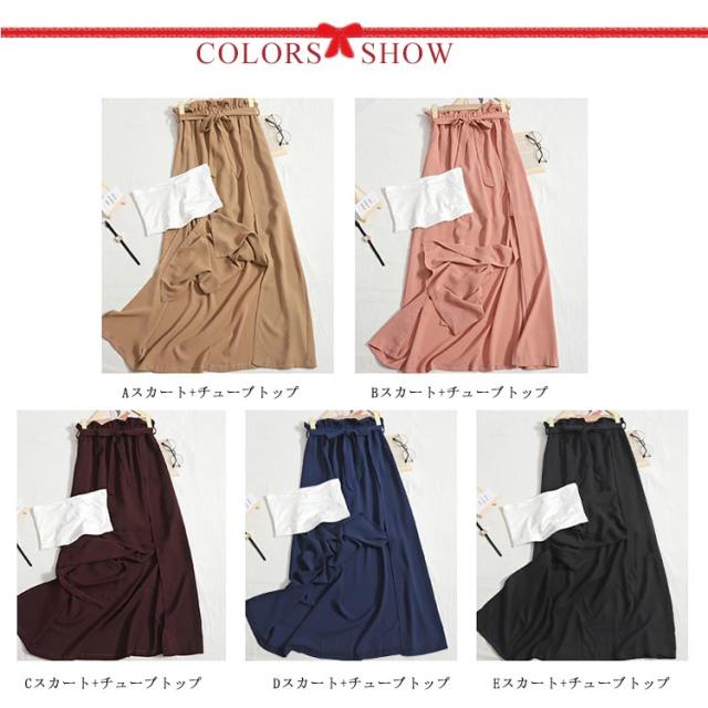 【スカート*チューブトップ 2点セット】フレアスカート ロングスカート スリット入り ウエストゴム ウエストリボン 無地 レディース ロング丈 スカート 上品 シンプル カジュアル
