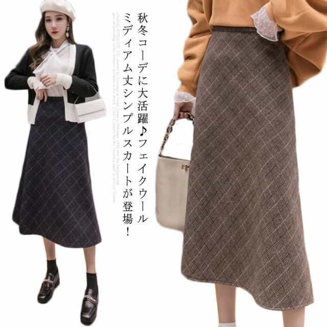 フレアスカート Aラインスカート ひざ下 無地 チェック 秋冬 スカート ミモレ ファスナー シンプル ミディ丈 上品 清楚 レディース ロング 膝下 ミモレ丈 Aライン フレア 裏地 秋 冬 春 カジュアル フェイク ウール