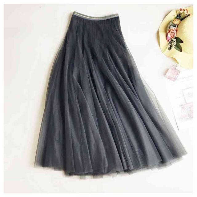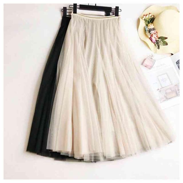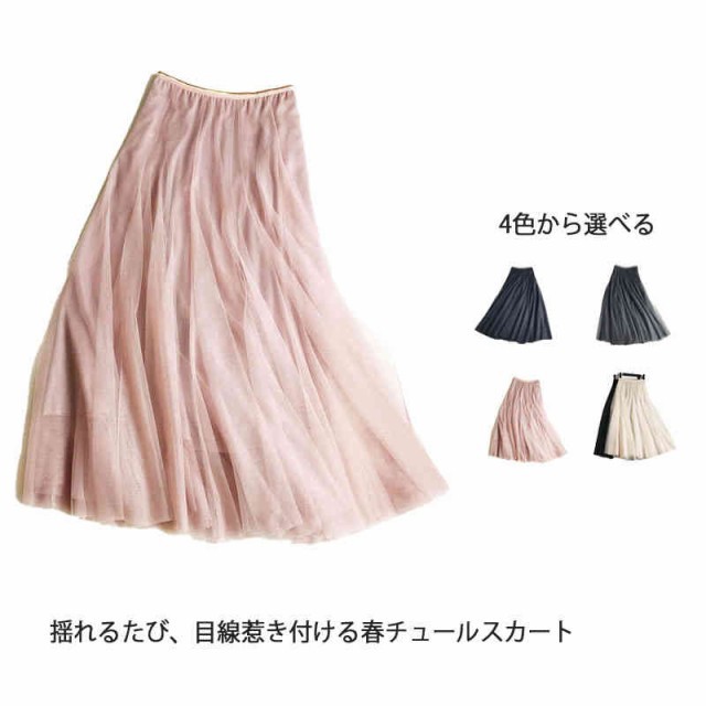 チュールスカート ロングスカート フレアスカート プリーツスカート ウエストゴム 透け感 重ねチュール 裏地あり 体型カバー レーディス Aライン ふんわりチュール アンクル丈 春 ボトムス きれいめ ゆったり