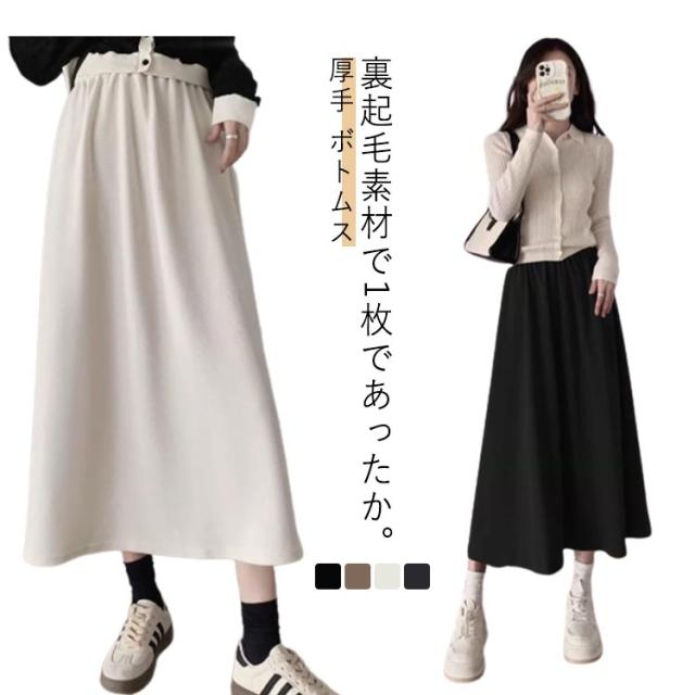 ロングスカート 裏起毛 レディース フレアスカート ロング丈 大きいサイズ 体型バー 防寒 無地 ボトムス Aライン 部屋着 ルームウェア 毛布のように暖かい 保温 冬用 秋冬 あたたかい ふわふわ もこもこ オフィス カジュアル ストレッチ シンプル 通勤