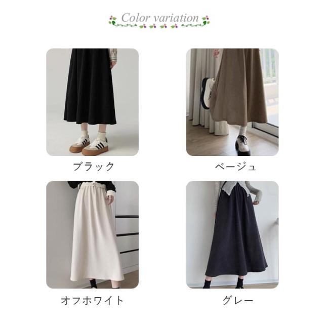 | 裏起毛素材で1枚であったか。 ゴムが入っているためストレスフリーな履き心地。 ロング丈・マキシ丈と選べコーデに合わせて揃えるもの。 冬でもスカートコーデを楽しめますよ。 | |