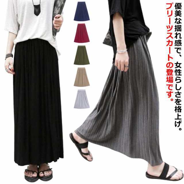 プリーツスカート ロング マキシ 丈 スカート プリーツ モダール 薄手 フレア ロングスカート マキシスカート フレアスカート ウエストゴム ボリューム Aライン きれいめ おしゃれ ふんわり シンプル 無地 カジュアル