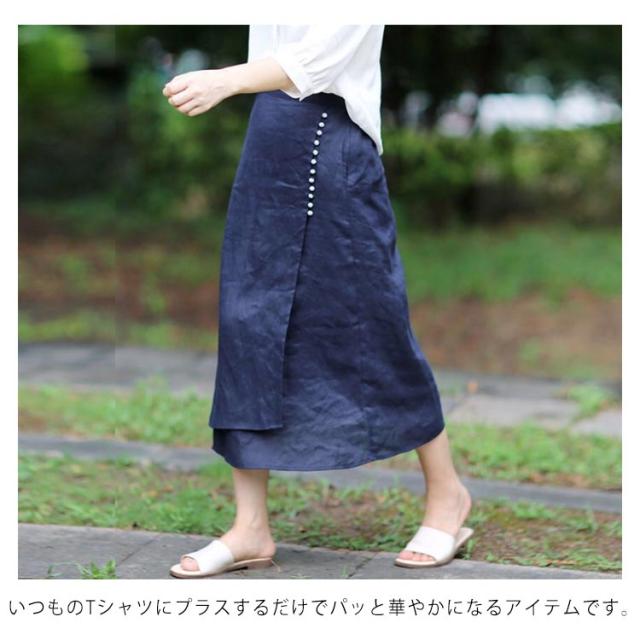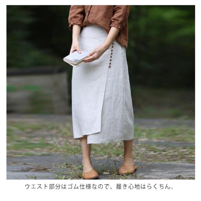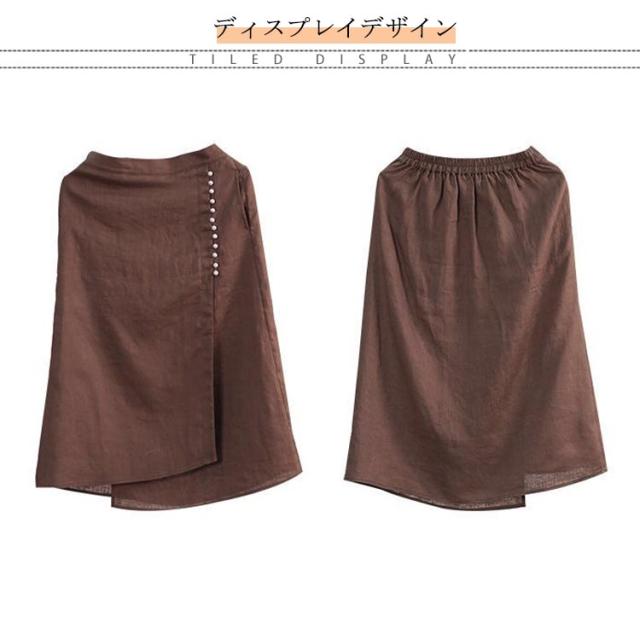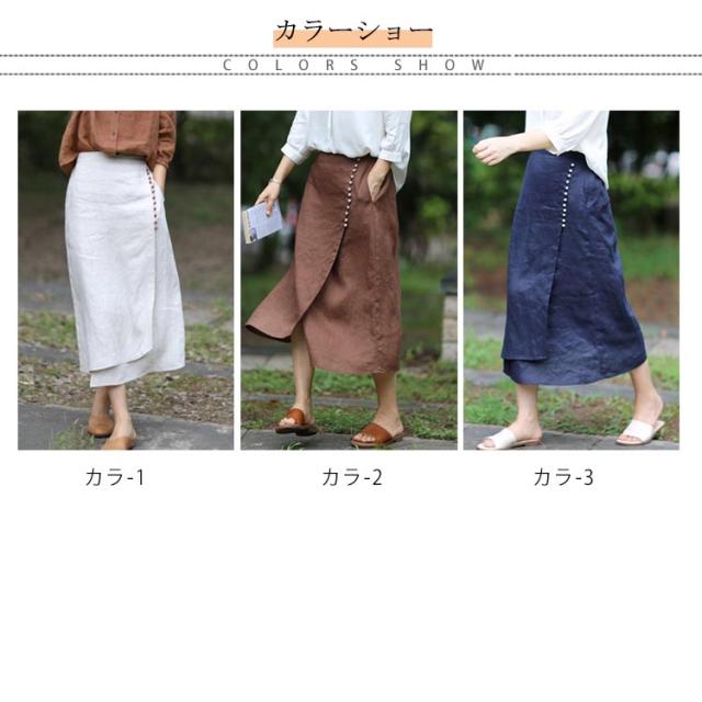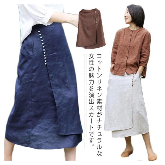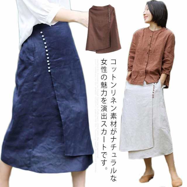 スカート レディース ロングスカート 夏物 ボトムス ミモレ丈 綿麻スカート 後ろウエストゴム Aライン 無地 着痩せ キレイめ 30代 40代 50代 春夏