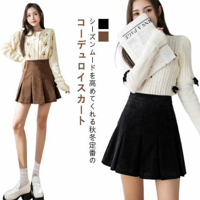 送料無料 ミニスカート レディース コーデュロイスカート スカート 膝上丈 キュロットスカート ハイウエスト フレアスカート Aライン プリーツ 着痩せ シンプル 防寒 保温 秋 冬 オシャレ オフィス OL 通勤 カジュアル 無地 大人かわいい