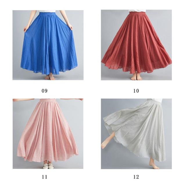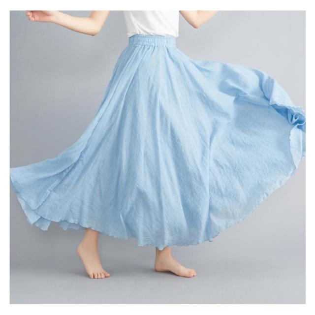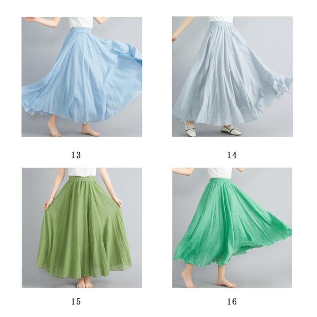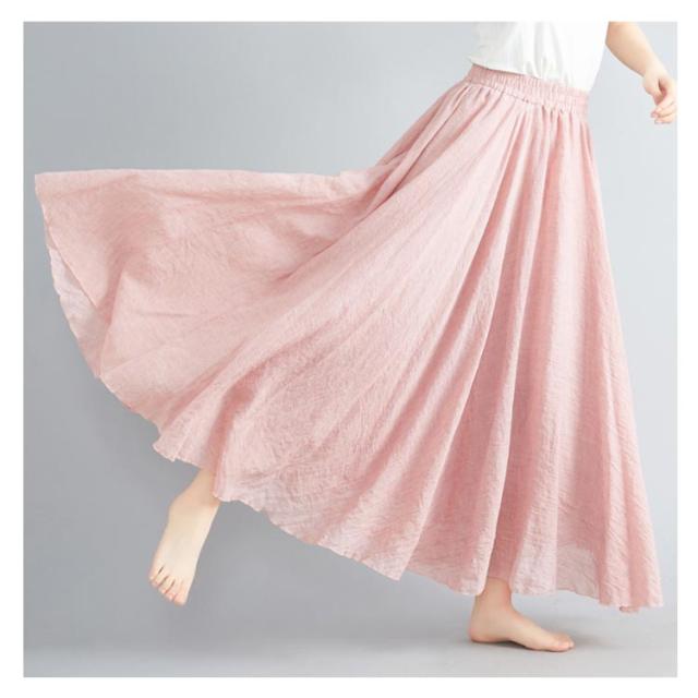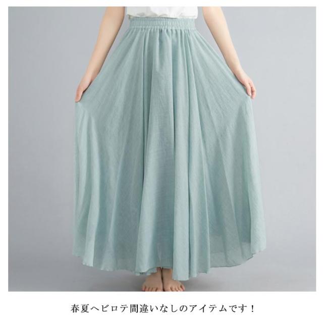 全20色×2丈さ!マキシスカート リネンマキシフレアスカート リネンスカート フレアスカート マキシ丈 綿麻 スカート 麻混スカート フレア 夏 新作 ナチュラル 可愛い