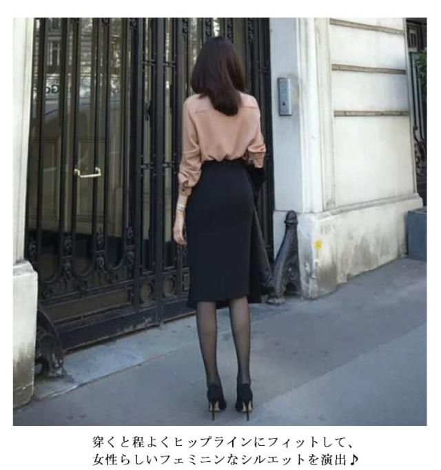| 女らしい印象を与えるタイトスカート。 動きやすいストレッチ素材が快適な着心地を実現させています。 穿くと程よくヒップラインにフィットして、女性らしいフェミニンなシルエットを演出♪ シンプルなブラウスを合わせばスタイリッシュなオフィススタイルに。 オフィスはもちろん、結婚式やパーティー、入学式・卒業式などのフォーマルシーンにも大活躍!! | |